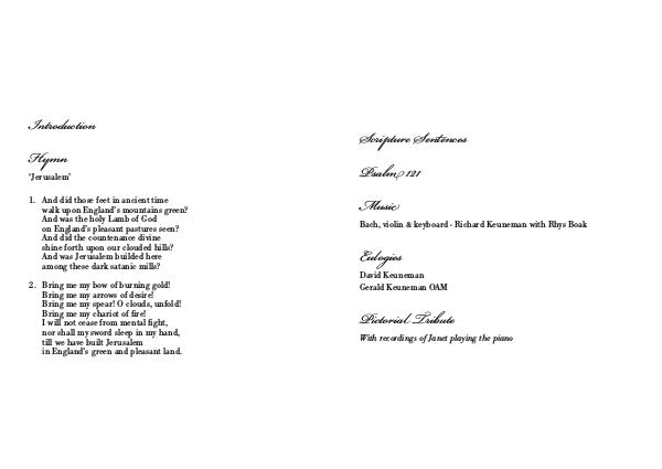 Bethel Funerals Janet Keuneman Funeral Booklet | Página 2