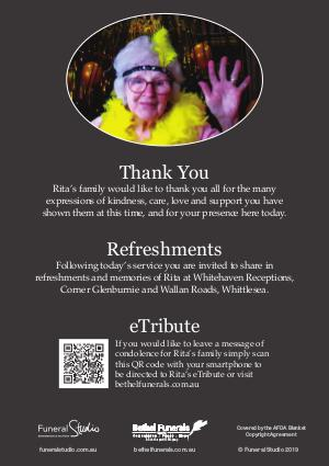 Rita’s family would like to thank you all for the many