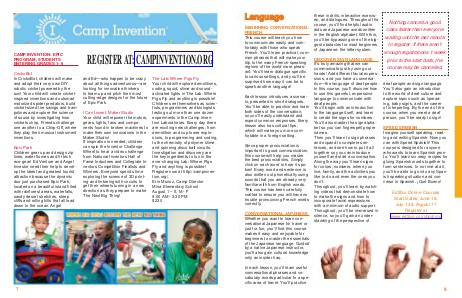 CAMP INVENTION: EPIC PROGRAM, STUDENTS ENTERING GRADES 1- 6