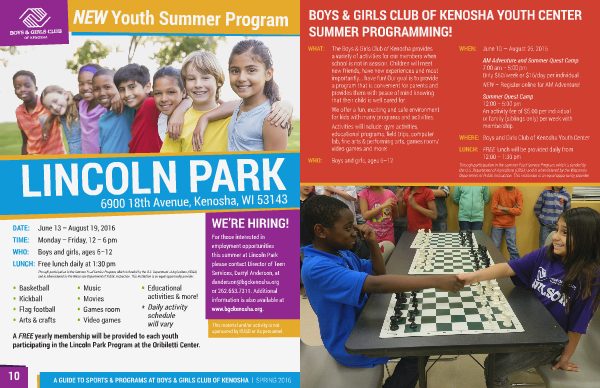 A GUIDE TO SPORTS & PROGRAMS AT BOYS & GIRLS CLUB OF KENOSHA | SPRING 2016