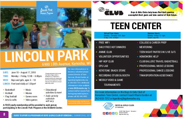 GUIDE TO SPORTS & PROGRAMS AT BOYS & GIRLS CLUB OF KENOSHA | SUMMER/FALL 2018