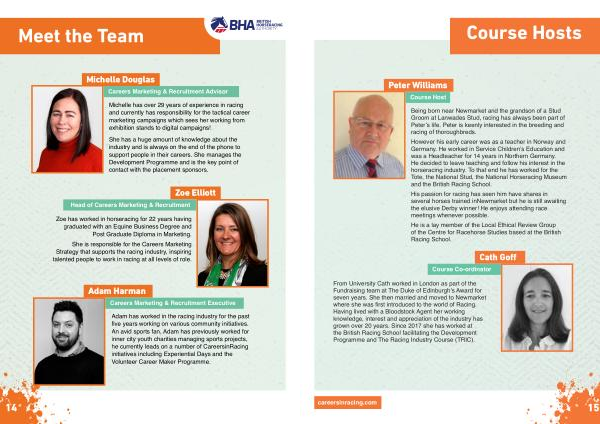From University Cath worked in London as part of the Fundraising team at The Duke of Edinburgh ’ s Award for seven years . She then married and moved to Newmarket where she was first introduced to the world of Racing . Having lived with a Bloodstock Agent her working knowledge , interest and appreciation of the industry has grown over 20 years . Since 2017 she has worked at the British Racing School facilitating the Development Programme and The Racing Industry Course ( TRIC ).