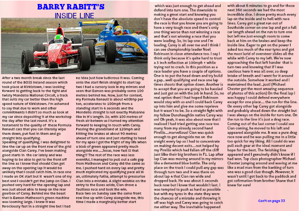 Race two on Sunday saw the same front row line up with Carey alongside me, this time I made a marginally better start