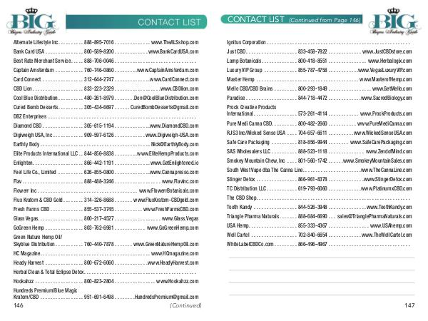 Pure Medi Canna CBD.......... 800-482-2660........... www. PureMediCanna. com RJS3 Inc / Wicked Sense USA.... 704-657-6611.......... www. WickedSenseUSA. com Safe Care Packaging.......... 818-856-9944........ www. SafeCarePackaging. com SAS Wholesalers LLC.......... 888-523-1118.............. www. ZendofMind. com Smokey Mountain Chew, Inc.... 801-560-1742...... www. SmokeyMountainSales. com South West Vape dba The Canna Line...................... www. TheCannaLine. com Stinger Detox................ 866-961-8378.............. www. StingerDetox. com TC Distribution LLC............ 619-793-6060............. www. PlatinumxCBD. com The CBD Shop............................................................ Tooth Kandy................. 844-526-3948............... www. ToothKandy. com Triangle Pharma Naturals....... 888-684-6690... sales @ TrianglePharmaNaturals. com USA Hemp................... 855-333-4367................ www. USAhemp. com Well Cartel.................. 702-840-6654............. www. TheWellCartel. com WhiteLabelCBDCo. com......... 866-496-4967................................