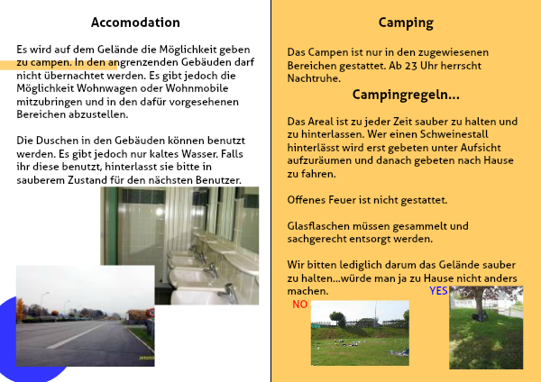 Es wird auf dem Gelände die Möglichkeit geben zu campen. In den angrenzenden Gebäuden darf nicht übernachtet werden. Es gibt jedoch die Möglichkeit Wohnwagen oder Wohnmobile mitzubringen und in den dafür vorgesehenen Bereichen abzustellen.