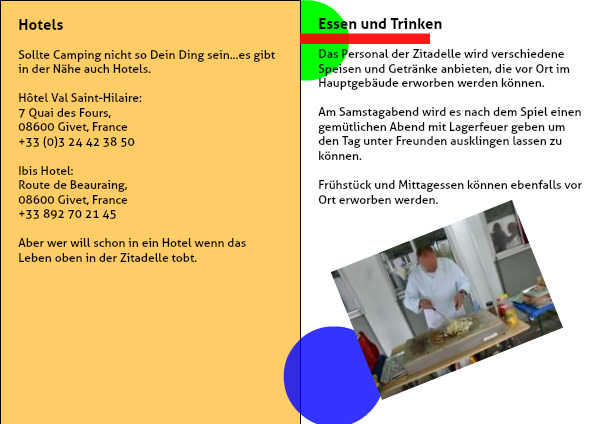 Das Personal der Zitadelle wird verschiedene Speisen und Getränke anbieten, die vor Ort im Hauptgebäude erworben werden können.