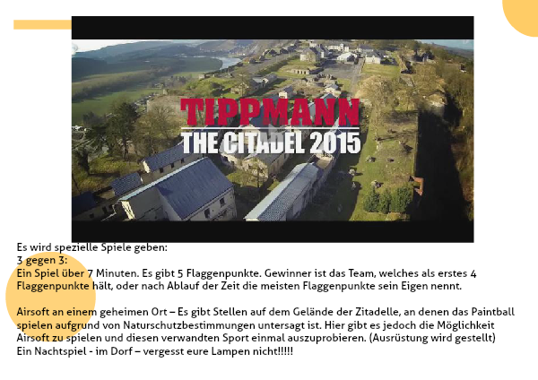 Airsoft an einem geheimen Ort – Es gibt Stellen auf dem Gelände der Zitadelle, an denen das Paintball spielen aufgrund von Naturschutzbestimmungen untersagt ist. Hier gibt es jedoch die Möglichkeit Airsoft zu spielen und diesen verwandten Sport einmal auszuprobieren. (Ausrüstung wird gestellt)