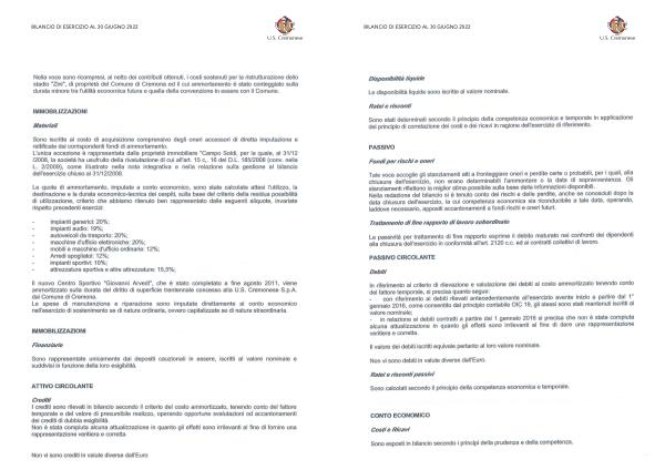 Bilanci e relazioni Us Cremonese Bilancio 30 giugno 2022 | 页面 13