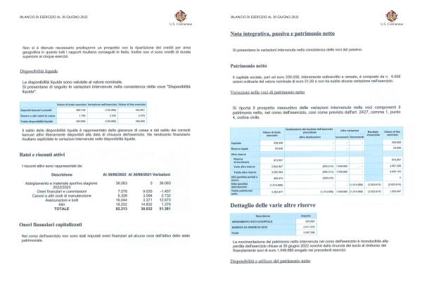 Bilanci e relazioni Us Cremonese Bilancio 30 giugno 2022 | Page 22