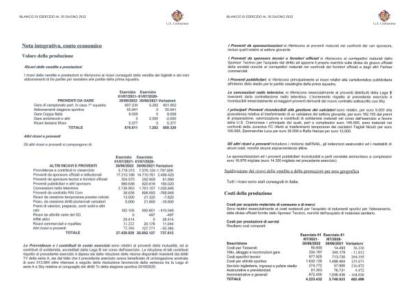 Bilanci e relazioni Us Cremonese Bilancio 30 giugno 2022 | Seite 29