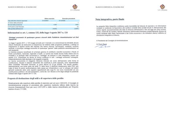 Bilanci e relazioni Us Cremonese Bilancio 30 giugno 2022 | Page 37