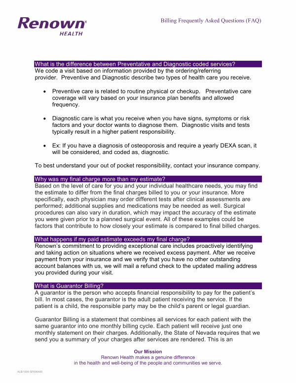 What happens if my paid estimate exceeds my final charge? Renown’ s commitment to providing exceptional care includes proactively identifying and taking action on situations where we received excess payment. After we receive payment from your insurance and we verify that you have no other outstanding account balances with us, we will mail a refund check to the updated mailing address you provided during your visit.