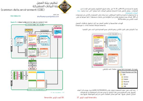 يضيع ما نسبته من % 20 الى % 25 من وقت فريق المشروع يضيع في البحث عن الملفات, يمكن تلافي هذه الخسارة بتنظيم البيانات كما سنقرأ الان عند دراسه بيئة البيانات المشتركة و ما سنتعرض له هو من الكود البريطاني حيث يركز على المستوى الثاني من مستويات ال( BIM هناك بيئه تعاونية ولكن تم أنشاؤها في ملفات منفصلة) كما تعرضنا له في العدد الثاني من BIMarabia