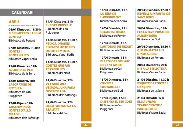 Biblioteca de la Serra 20/04 Divendres, 17.30 h