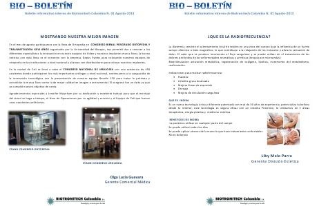 Boletín informativo interno de Biotronitech Colombia N. 01 Agosto-2013