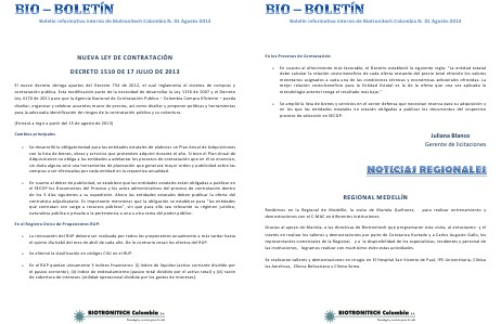 Boletín informativo interno de Biotronitech Colombia N. 01 Agosto-2013