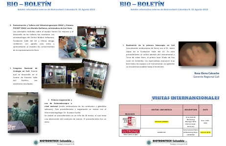 Boletín informativo interno de Biotronitech Colombia N. 01 Agosto-2013