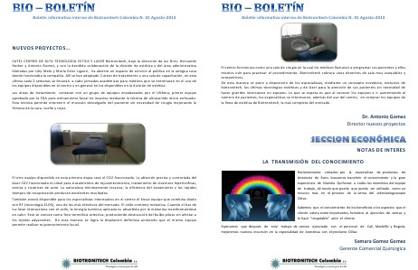 Boletín informativo interno de Biotronitech Colombia N. 01 Agosto-2013