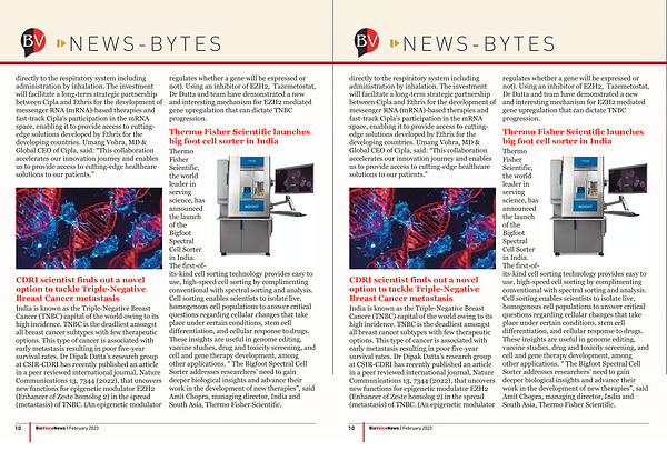 Thermo Fisher Scientific , the world leader in serving science , has announced the launch of the Bigfoot Spectral Cell Sorter in India . The first-ofits-kind cell sorting technology provides easy to use , high-speed cell sorting by complimenting conventional with spectral sorting and analysis . Cell sorting enables scientists to isolate live , homogenous cell populations to answer critical questions regarding cellular changes that take place under certain conditions , stem cell differentiation , and cellular response to drugs . These insights are useful in genome editing , vaccine studies , drug and toxicity screening , and cell and gene therapy development , among other applications . “ The Bigfoot Spectral Cell Sorter addresses researchers ’ need to gain deeper biological insights and advance their work in the development of new therapies ”, said Amit Chopra , managing director , India and South Asia , Thermo Fisher Scientific .