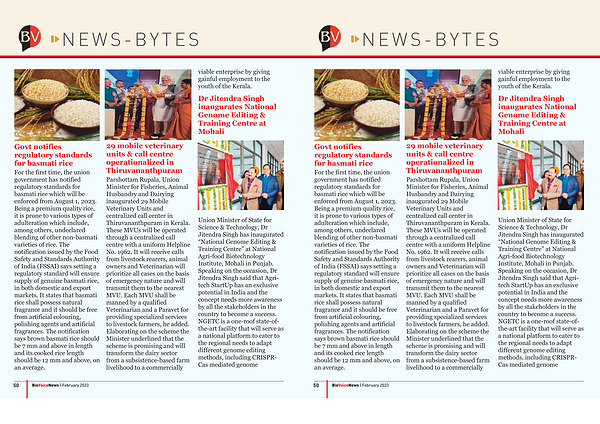For the first time , the union government has notified regulatory standards for basmati rice which will be enforced from August 1 , 2023 . Being a premium quality rice , it is prone to various types of adulteration which include , among others , undeclared blending of other non-basmati varieties of rice . The notification issued by the Food Safety and Standards Authority of India ( FSSAI ) says setting a regulatory standard will ensure supply of genuine basmati rice , in both domestic and export markets . It states that basmati rice shall possess natural fragrance and it should be free from artificial colouring , polishing agents and artificial fragrances . The notification says brown basmati rice should be 7 mm and above in length and its cooked rice length should be 12 mm and above , on an average .
