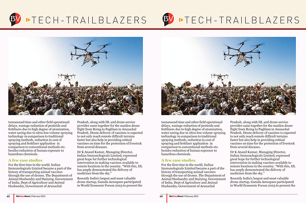 Founded in 2016 by Amandeep Panwar and Rishabh Choudhary , Delhi-based BharatRohan Airborne Innovations provides drone-based advisory services to nearly 6,000 farmers across 20,000 acres in Uttar Pradesh and Rajasthan . It offers a technology-enabled end-to-end decision support system to optimise input usage , minimise crop losses , and maximise profit margins by facilitating crop advisory services with its UAV / drone-based hyperspectral imagery . The agritech startup currently provides drone-based advisory services to nearly 6,000 farmers in Uttar Pradesh and Rajasthan – of which almost 20 percent purchase agri-inputs from the company .
