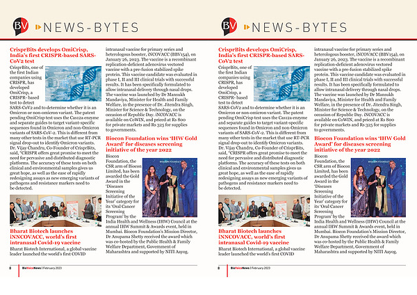 CrisprBits , one of the first Indian companies using CRISPR , has developed OmiCrisp , a CRISPR- based test to detect SARS-CoV2 and to determine whether it is an Omicron or non-omicron variant . The patent pending OmiCrisp test uses the Cas12a enzyme and separate guides to target variant-specific sequences found in Omicron and non-Omicron variants of SARS-CoV-2 . This is different from many other tests in the market that use RT-PCR signal drop-out to identify Omicron variants . Dr . Vijay Chandru , Co-Founder of CrisprBits , said , “ CRISPR offers great promise to meet the need for pervasive and distributed diagnostic platforms . The accuracy of these tests on both clinical and environmental samples gives us great hope , as well as the ease of rapidly redesigning assays as new emerging variants of pathogens and resistance markers need to be detected .