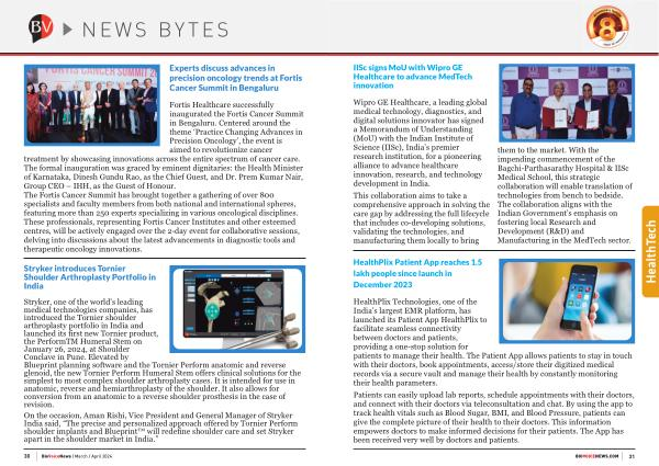 HealthPlix Patient App reaches 1.5 lakh people since launch in December 2023 them to the market . With the impending commencement of the Bagchi-Parthasarathy Hospital & IISc Medical School , this strategic collaboration will enable translation of technologies from bench to bedside . The collaboration aligns with the Indian Government ’ s emphasis on fostering local Research and Development ( R & D ) and Manufacturing in the MedTech sector .