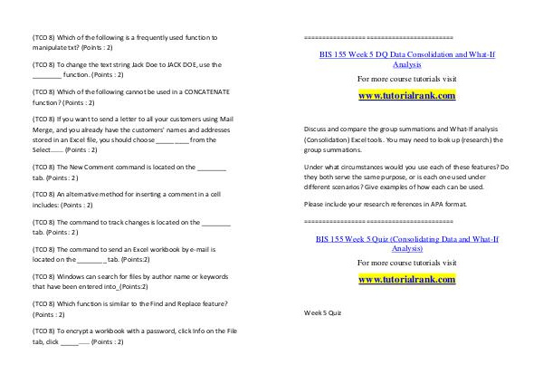 BIS 155 Course Great Wisdom / tutorialrank.com BIS 155 Course Great Wisdom / tutorialrank.com | Page 102