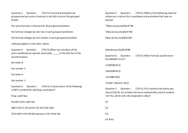 (TCO 5) If several worksheets are