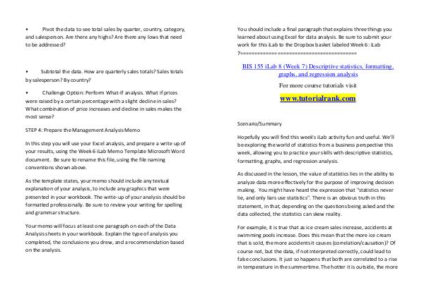 BIS 155 iLab 8 (Week 7) Descriptive statistics, formatting,