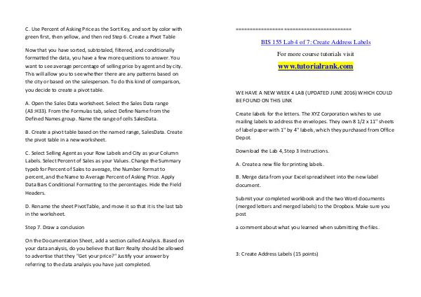 BIS 155 Lab 4 of 7: Create Address Labels