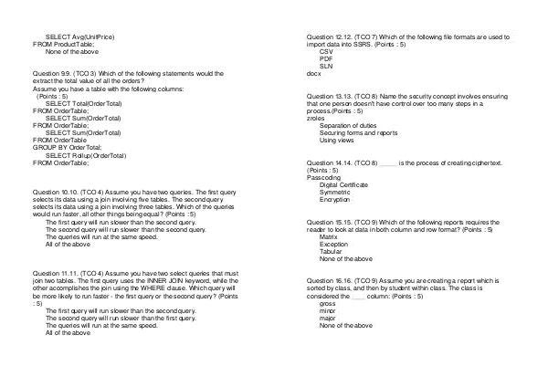 Question 16.16. (TCO 9) Assume you are creating a report which is