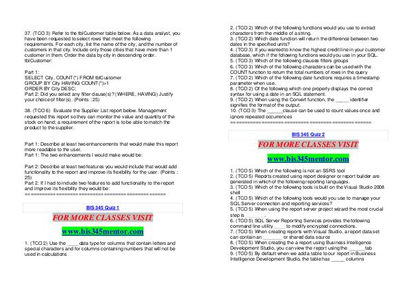 BIS 345 Quiz 2 FOR MORE CLASSES VISIT