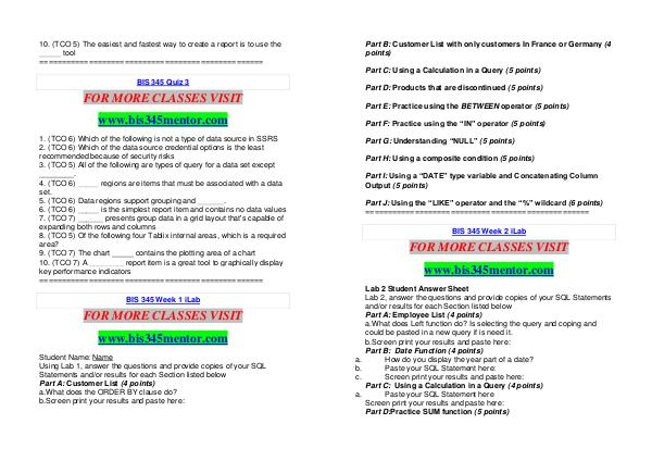 BIS 345 Week 1 iLab