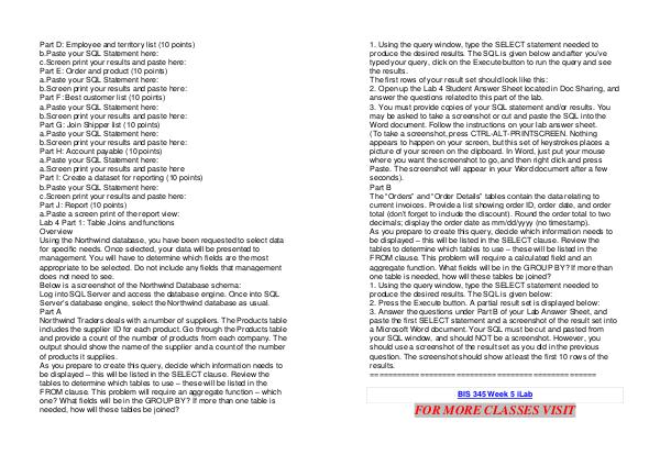 BIS 345 Week 5 iLab FOR MORE CLASSES VISIT