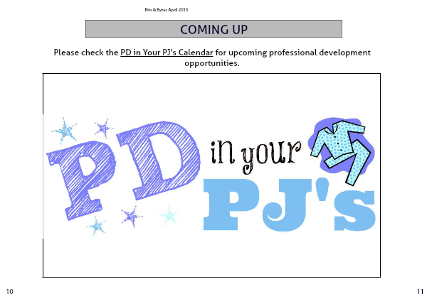 Please check the PD in Your PJ's Calendar for upcoming professional development opportunities.