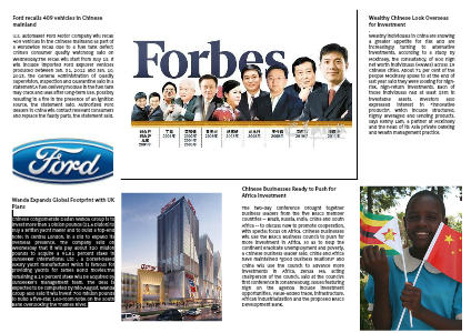 U.S. automaker Ford Motor Company will recall 409 vehicles in the Chinese mainland as part of a worldwide recall due to a fuel tank defect, China's consumer quality watchdog said on Wednesday.The recall will start from July 15. It will include imported Ford Explorer vehicles produced between Jan. 31, 2012 and Jan. 10, 2013, the General Administration of Quality Supervision, Inspection and Quarantine said in a statement.A fuel delivery module in the fuel tank may crack and leak after long-term use, possibly resulting in a fire in the presence of an ignition source, the statement said. Authorized Ford dealers in China will contact relevant consumers and replace the faulty parts, the statement said.