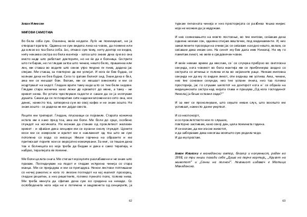 Во бела соба сум. Осамена, веќе недели. Луѓе не поминуваат, не ја