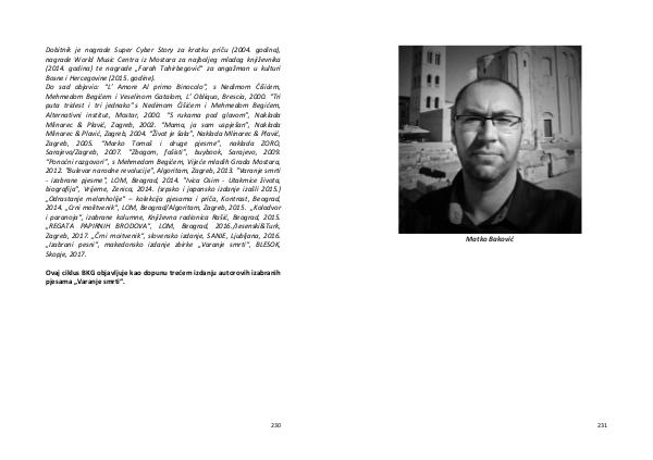 Ovaj ciklus BKG objavljuje kao dopunu trećem izdanju autorovih izabranih pjesama „ Varanje smrti“.