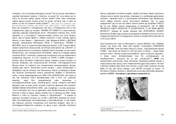 Тајна Бесмртности сада се обзнањује у „ Језику Љубави“ или „ Љубави Језика“, јер Језик није „ Онај који одлази“. Исписујући „ ПОБУЊЕНИ АТЛАС ЉУБАВИ“( или пак Њену Химну 21. века), Сава Дамјанов уписује СЛОВО које беше од Искони и које ће бити на Крају – „ мада Краја уистину нема“. Итика Јерополитика @ VUK „ дете је многих жанрова“, и свака њена интерпретација која би „ претендовала на свеобухватност“, показала би се као „ илузорност“ 5. БИЋЕ као неухватљиви неологизам своју текстуалну пројекцију добија управо у овом роману чији аутор, попут Адама речима даје своја имена. Па тако и Вечност добија своје Ново име, вечност у којој свако значење постаје Биће. И као што Хегел наводи, „ реч ВЕЧНО незгодан је израз“. И Историја и Љубав у роману С. Дамјанова искључују категорију времена, јер Вечно ЈЕСТЕ – постојање и престајање искључени су.