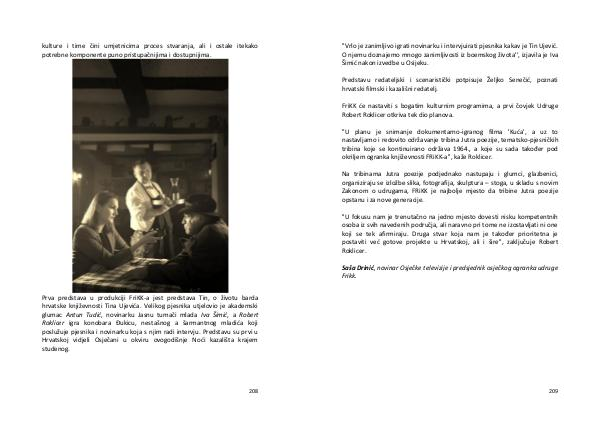 Prva predstava u produkciji FriKK-a jest predstava Tin, o životu barda hrvatske književnosti Tina Ujevića. Velikog pjesnika utjelovio je akademski glumac Antun Tudić, novinarku Jasnu tumači mlada Iva Šimić, a Robert Roklicer igra konobara Đukicu, nestašnog a šarmantnog mladića koji poslužuje pjesnika i novinarku koja s njim radi intervju. Predstavu su prvi u Hrvatskoj vidjeli Osječani u okviru ovogodišnje Noći kazališta krajem studenog.