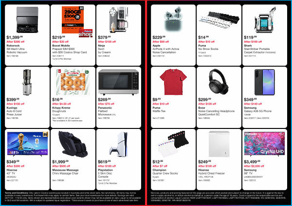 Terms and Conditions: Only valid in Costco warehouses located in Australia and while stock lasts. No rainchecks. All items may not be available in every warehouse. Purchase limits may apply to certain items. See your local warehouse for more details. Savings are valid 28 / 11 / 25- 1 / 12 / 25 only. Items shown are representations and colours and variants shown may not be available on sale. Liquor is not available in QLD and SA locations. WA is subject to updated liquor legislation. * Total amount saved on purchase of one of each advertised sale item.