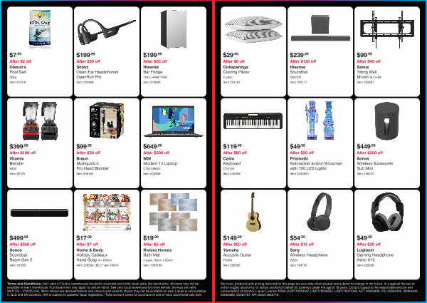 Terms and Conditions: Only valid in Costco warehouses located in Australia and while stock lasts. No rainchecks. All items may not be available in every warehouse. Purchase limits may apply to certain items. See your local warehouse for more details. Savings are valid 28 / 11 / 25- 1 / 12 / 25 only. Items shown are representations and colours and variants shown may not be available on sale. Liquor is not available in QLD and SA locations. WA is subject to updated liquor legislation. * Total amount saved on purchase of one of each advertised sale item.