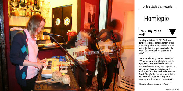 Un trío proveniente de São Paulo con canciones cortas, coros alegres y letras fáciles no podían tener un mejor nombre que el de Homipie, que nos remite a la expresión: “compartir un pastel en tú casa”