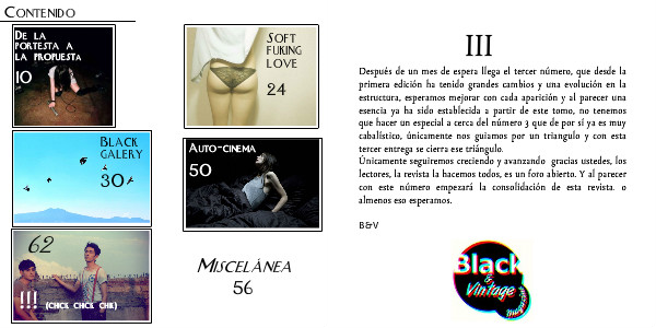 Después de un mes de espera llega el tercer número, que desde la primera edición ha tenido grandes cambios y una evolución en la estructura, esperamos mejorar con cada aparición y al parecer una esencia ya ha sido establecida a partir de este tomo, no tenemos que hacer un especial a cerca del número 3 que de por sí ya es muy cabalístico, únicamente nos guiamos por un triangulo y con esta tercer entrega se cierra ese triángulo.