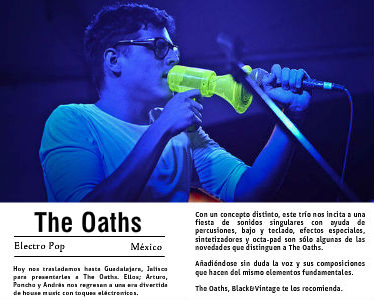 Con un concepto distinto, este trío nos incita a una fiesta de sonidos singulares con ayuda de percusiones, bajo y teclado, efectos especiales, sintetizadores y octa-pad son sólo algunas de las novedades que distinguen a The Oaths.