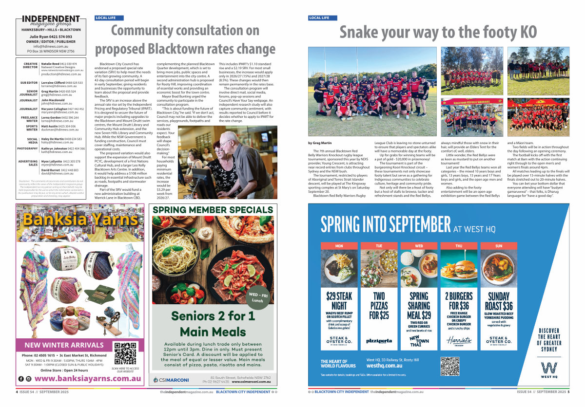 4 ISSUE 54 // SEPTEMBER 2025 theindependentmagazine. com. au BLACKTOWN CITY INDEPENDENT