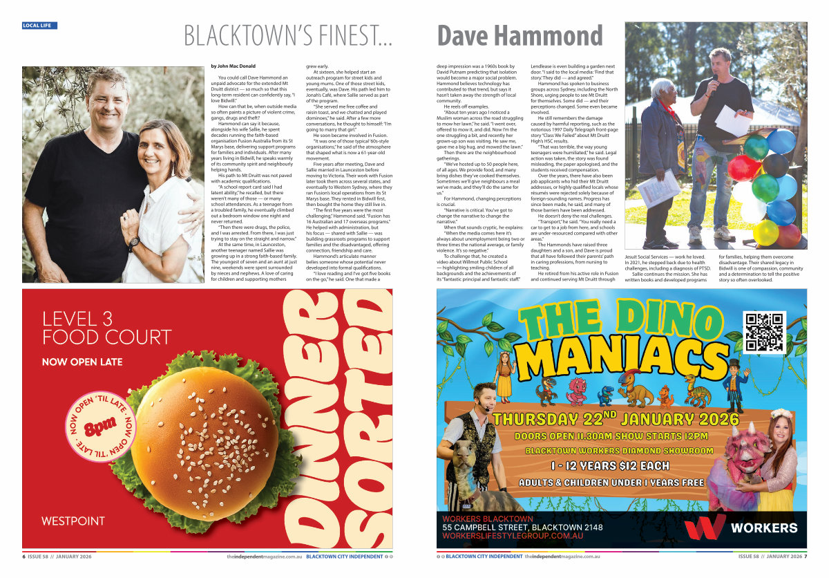 Hammond has spoken to business groups across Sydney, including the North Shore, urging people to see Mt Druitt for themselves. Some did— and their perceptions changed. Some even became involved.