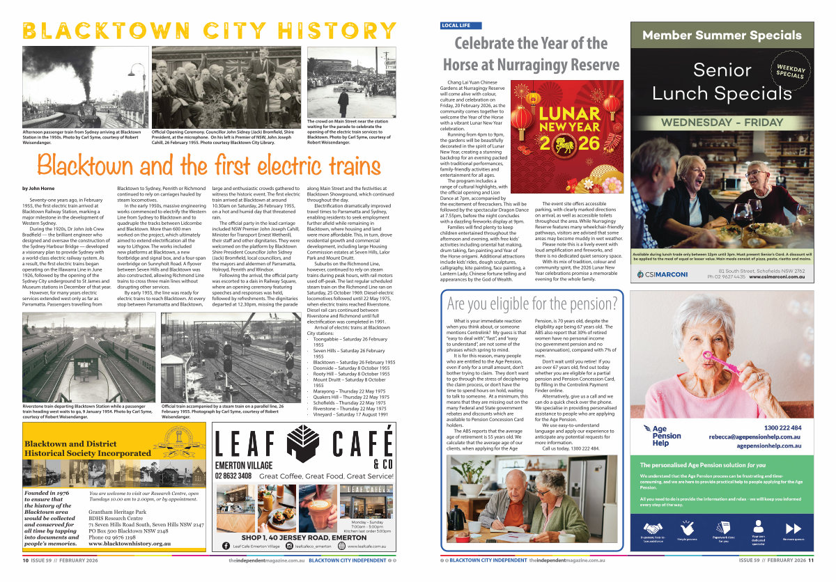 Seventy-one years ago, in February 1955, the first electric train arrived at Blacktown Railway Station, marking a major milestone in the development of Western Sydney.