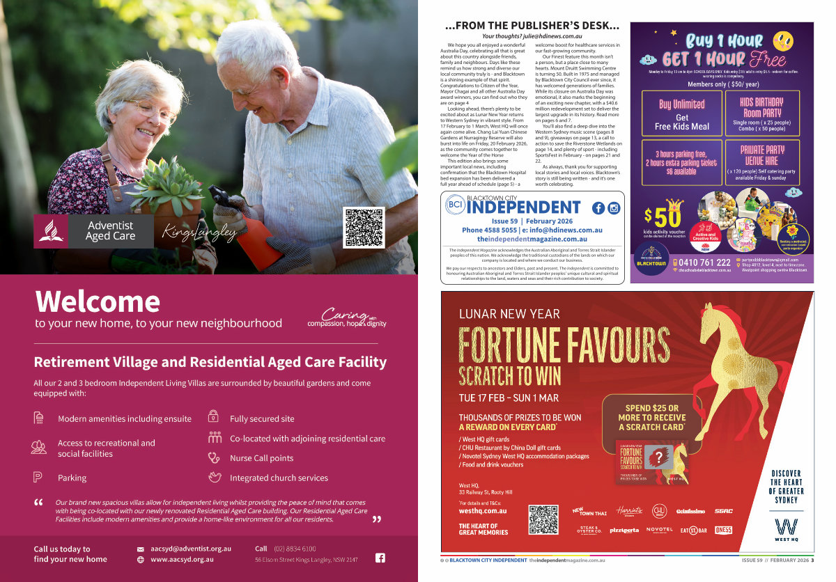 BLACKTOWN CITY INDEPENDENT theindependentmagazine. com. au ISSUE 59 // FEBRUARY 2026 3